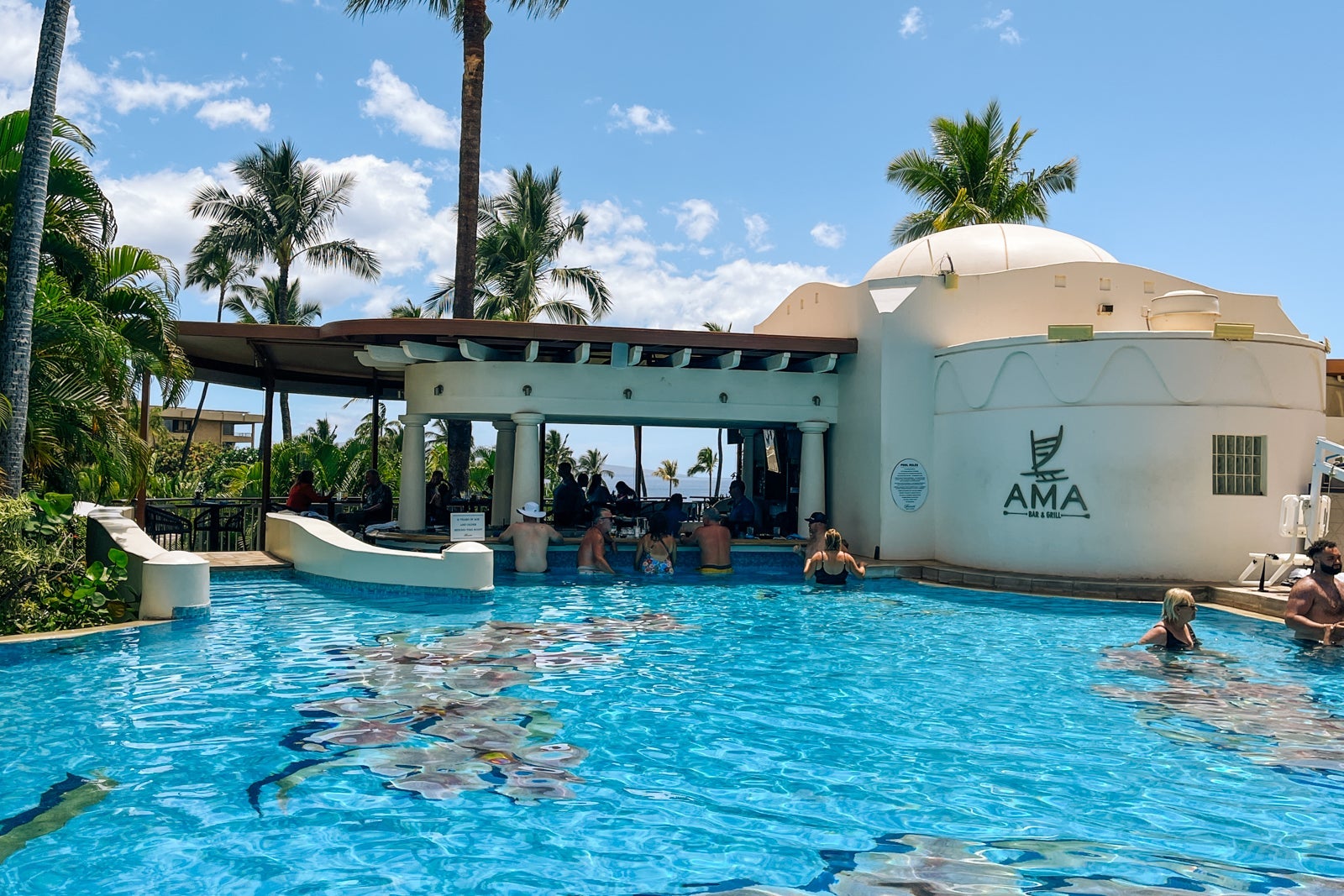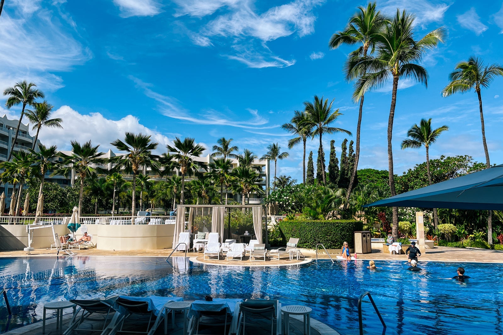 The adults-only pool is closer to the main building, facing Ko Restaurant and the Kea Lani breakfast patio.