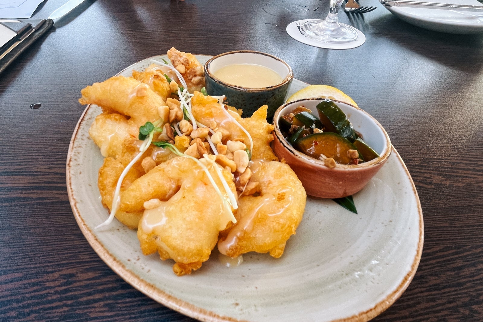 To start, we shared the crispy shrimp with a Maui lavender honey sauce, candied macadamia nuts and smashed sesame cucumbers ($30). The flavors were a great complement to each other — it was savory and a bit sweet at the same time.