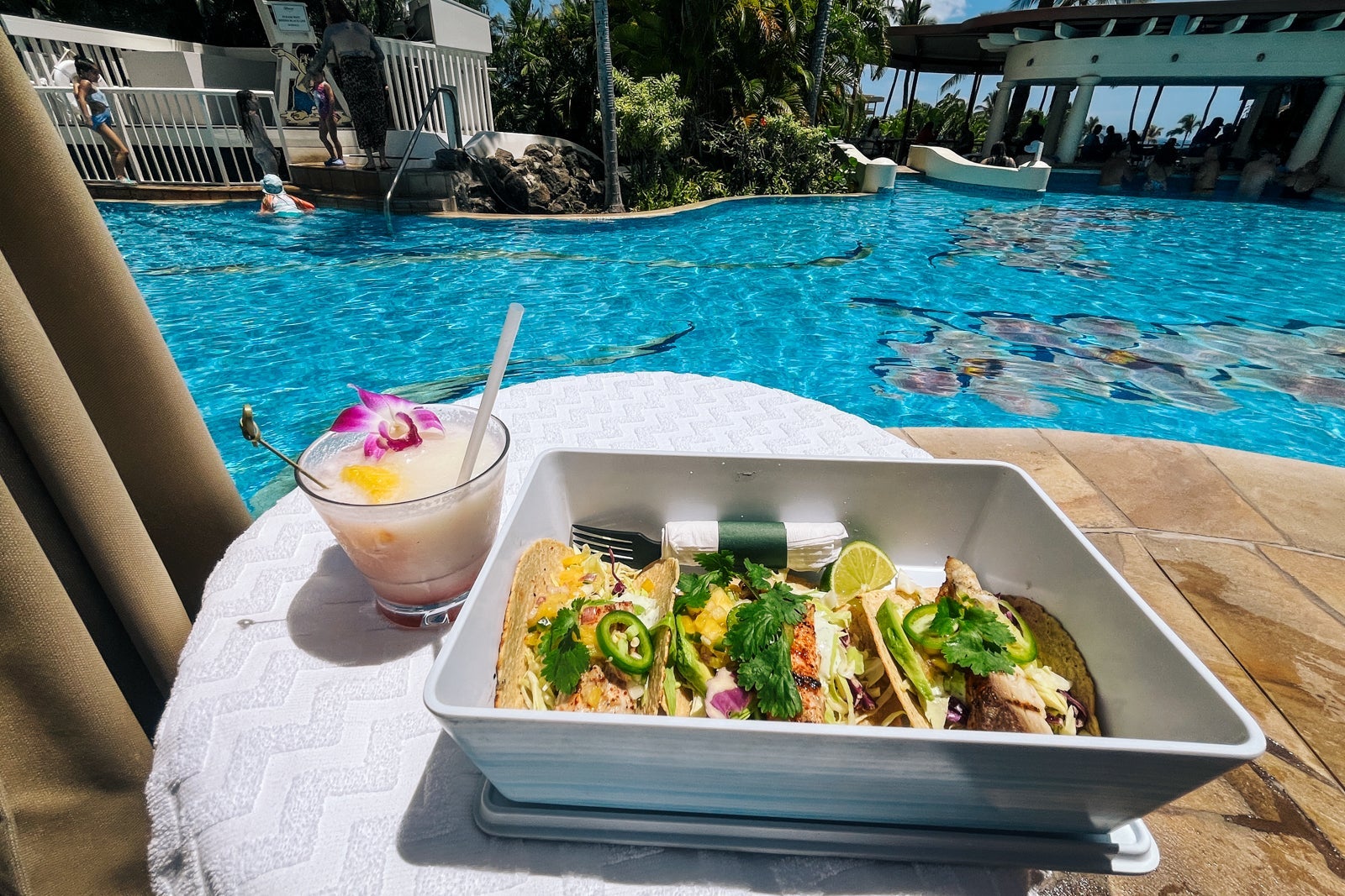 Serving lunch and dinner, Pilina is an open-air lobby bar with gorgeous ocean views. The menu offers local drinks, fresh seafood, sushi, and a selection of meat and fish you can cook at your table on a hot rock. Just outside the entrance are swinging chairs which proved to be my daughter's favorite spot to visit besides the pool slide and beach.
