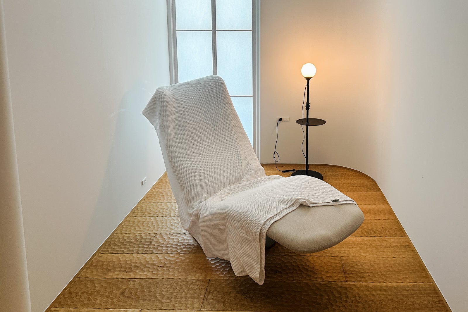 The bathing area of the room is a perfect example of old meets new, as a small wooden bench and bucket sit in the shower, alongside the same Natura Bisse products, allowing for a traditional Japanese-style bath where you can fill the bucket, sit on the bench and bathe. In a traditional situation, you might rinse, get in the neighboring bathtub and soak and then get out and really wash off. But since it's a private experience, you can enjoy the bathtub/shower combo however you like.