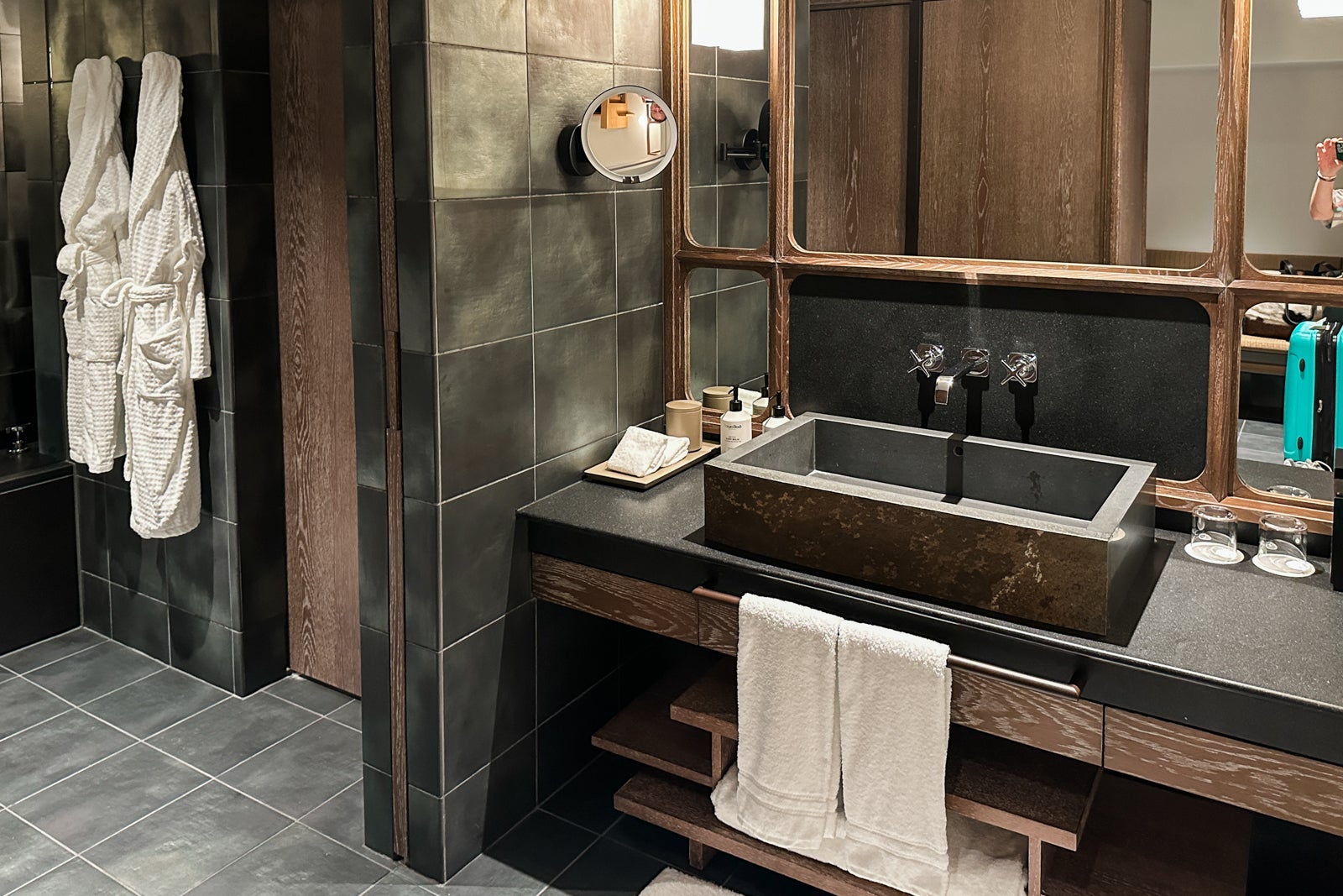 Walking into the suite, I was immediately met with a walk-in closet offering plenty of space to hang clothes and unpack, as well as amenities like umbrellas and, my favorite in-room amenity, a steamer.
