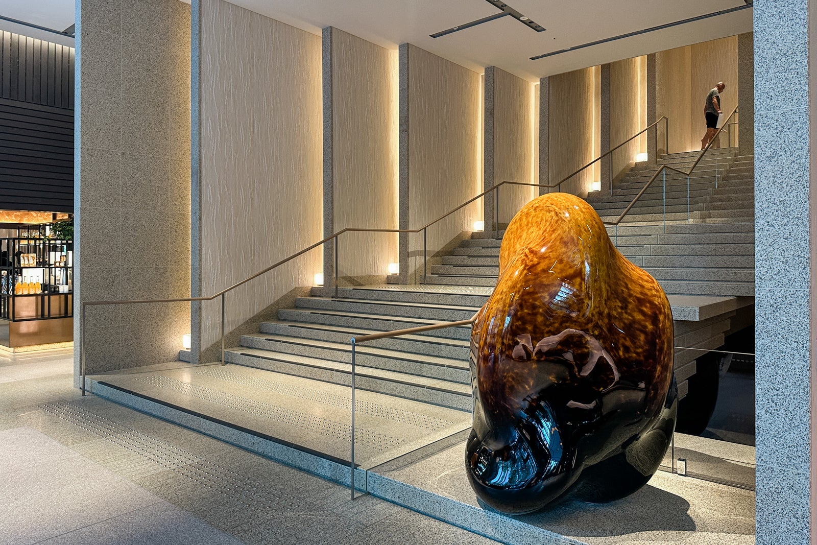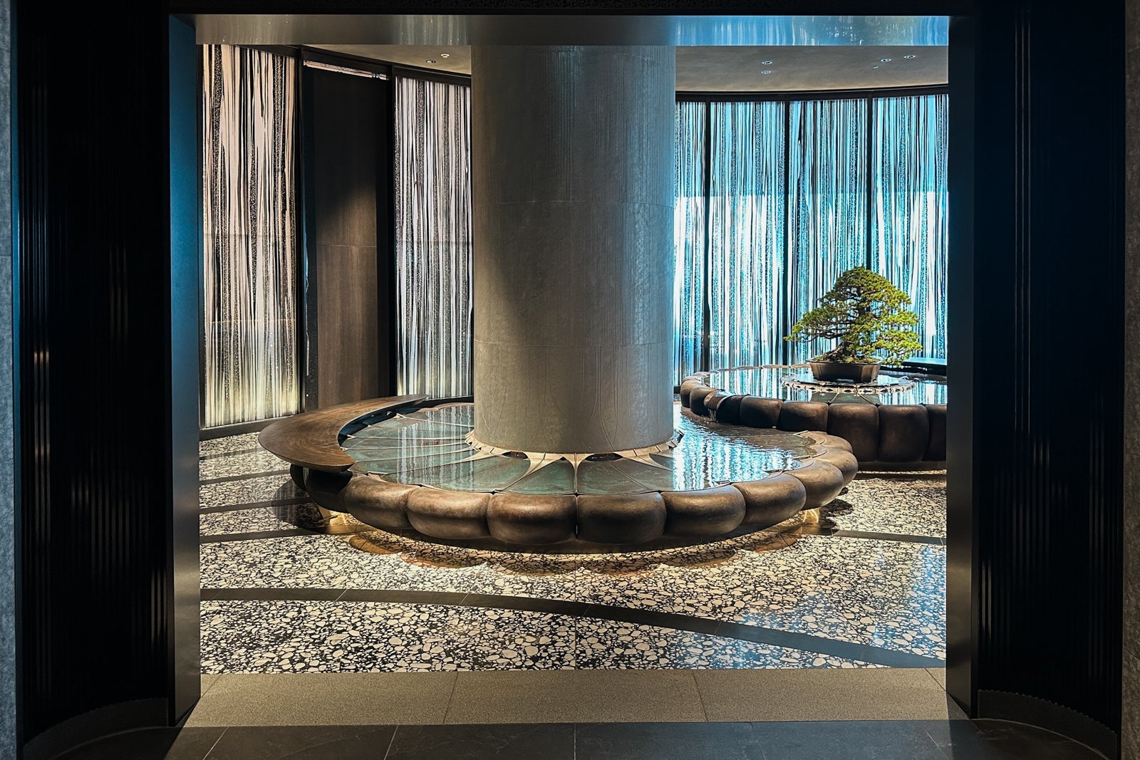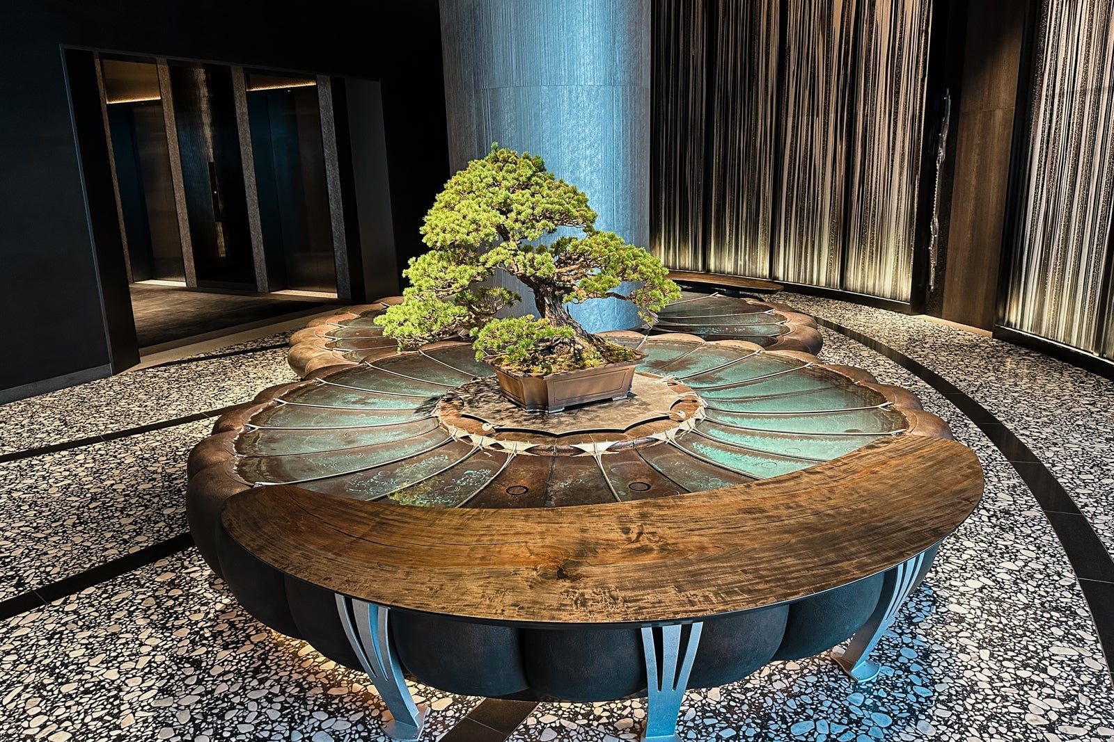 Taking up a series of midlevel floors in the 49-story One Dojima building, as well as the ground-floor lobby, the Four Seasons Osaka is a chic, if not dramatic, hotel. It starts from the moment guests arrive and walk past a glass-enclosed installation of a sort of magically suspended rock planter holding a tree. That piece sets the tone for the hotel's contemporary art and design scheme, alongside gorgeous elevator banks reflecting the orange coloring found in traditional urushi, or Japanese lacquered boxes and other subtle nods to Osaka, the City of Water.