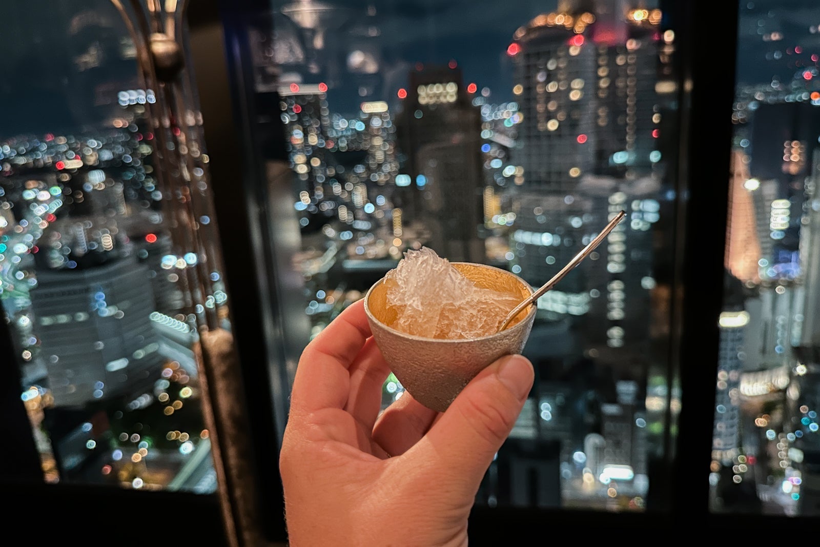 Also up on 37 is Bar Bota, a beautiful cocktail bar under the direction of Andrei Marcu. Besides the breathtaking views of the city, hotel guests and locals mingle around a Japanese spirits-forward cocktail menu with drinks like the Umeboshi Martini made with red ume-washed gin, bonito, Mancino Blanco vermouth and umami bitters, or the Dotonbori Slider, crafted with Lillet Blanc, Japanese Super Citrus triple sec, pink peppercorn, cream and a milk foam cracker, both for 2,500 yen ($17).