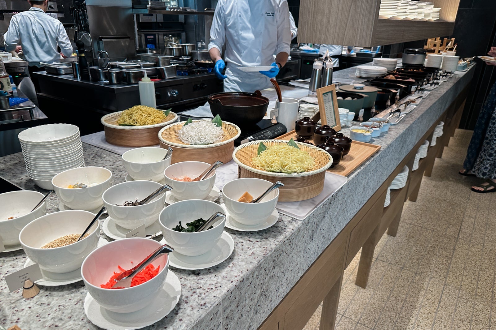 The breakfast buffet at Jardin, an airy restaurant that was bustling in the morning, was a mix of Western and Japanese favorites, plus a few a la carte and made-to-order options. I enjoyed everything I ate, including fried eggs, sauteed mushrooms, breakfast sausage, avocado toast and a bowl of noodles in a hearty broth with a hard-boiled egg.