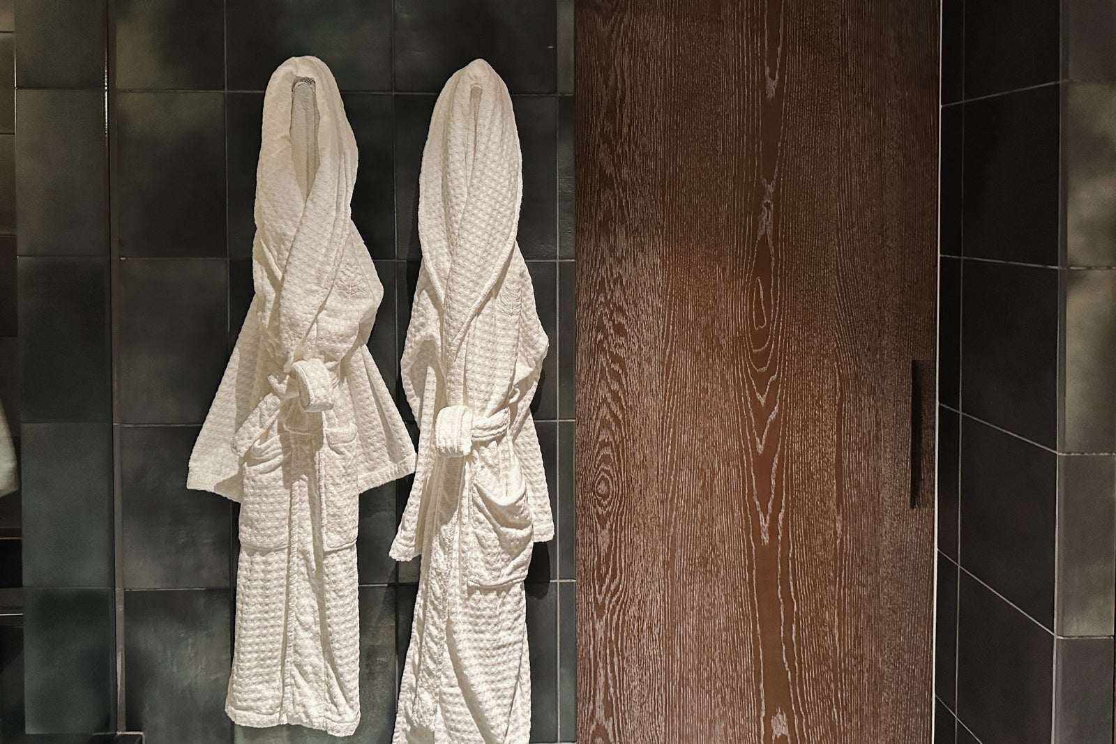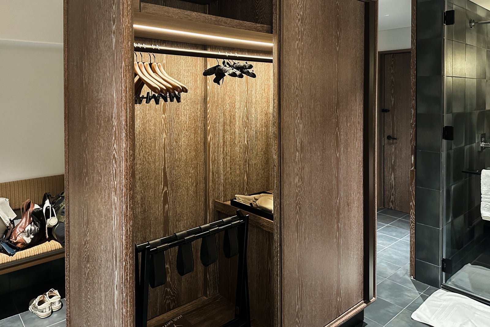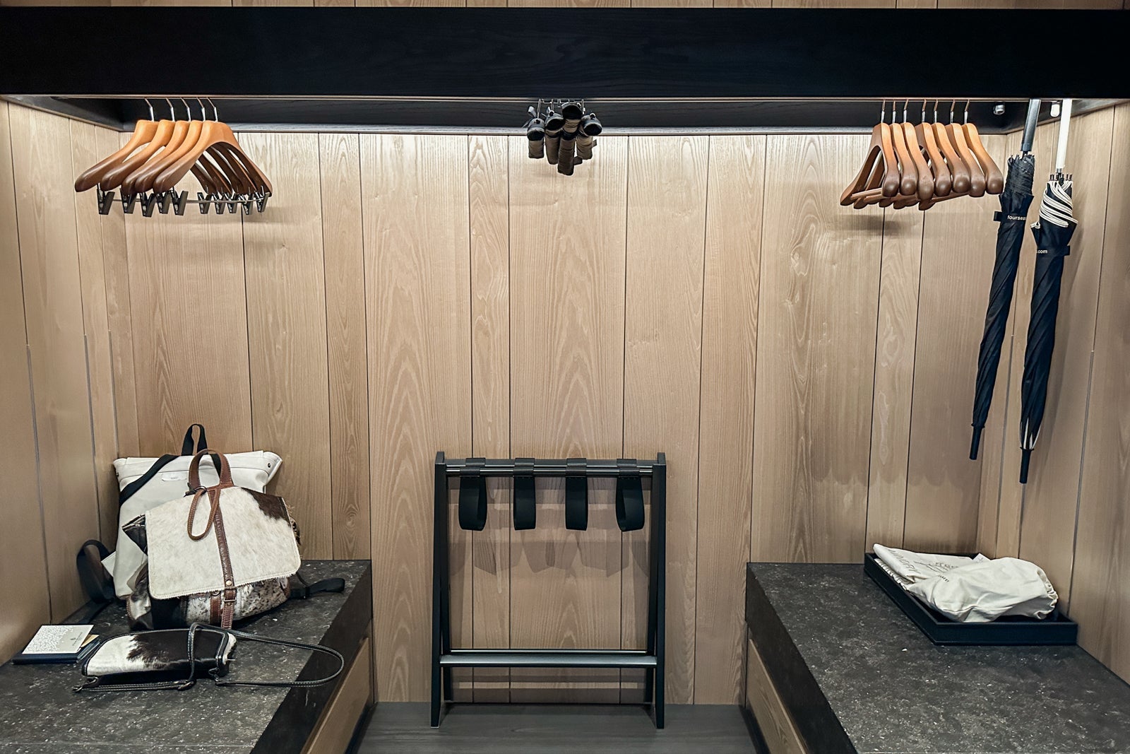 Walking into the suite, I was immediately met with a walk-in closet offering plenty of space to hang clothes and unpack, as well as amenities like umbrellas and, my favorite in-room amenity, a steamer.