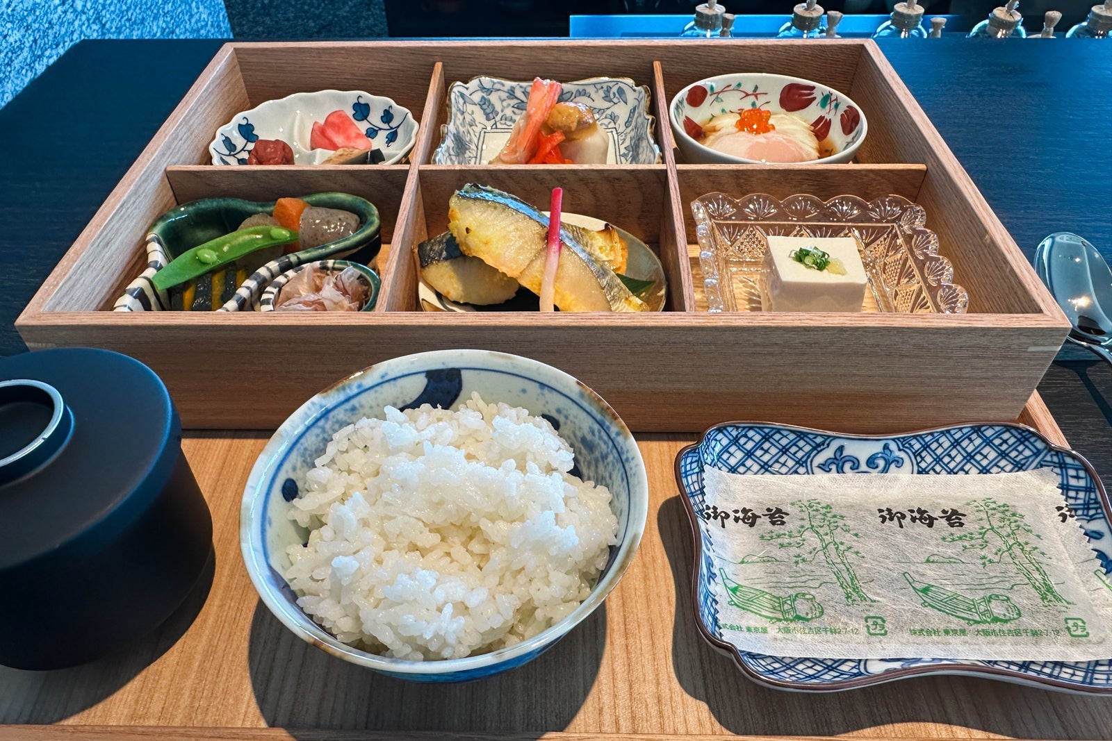 I had the opportunity to try the breakfast bento box in the lounge and thoroughly enjoyed the experience. Along with a (not-so-traditional) iced coffee, the bento box included a bunch of things my Western eyes recognized (some fish, tofu, rice, a beautiful egg and miso soup) as well as a lot of things I couldn't place (many pickled veggies, lots of interesting jelly-like textures and little bites that, even after being told what it was, I still really had no idea).