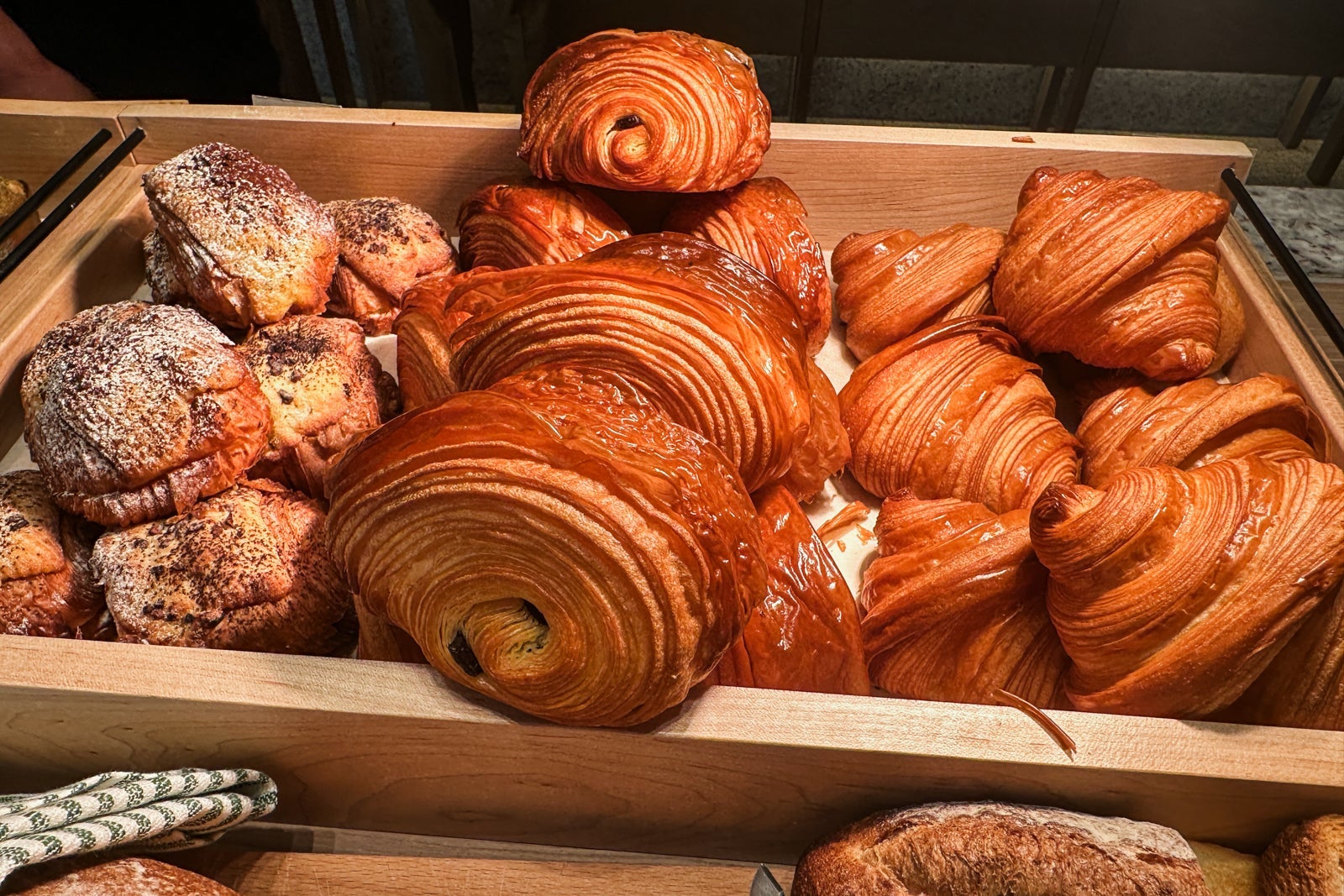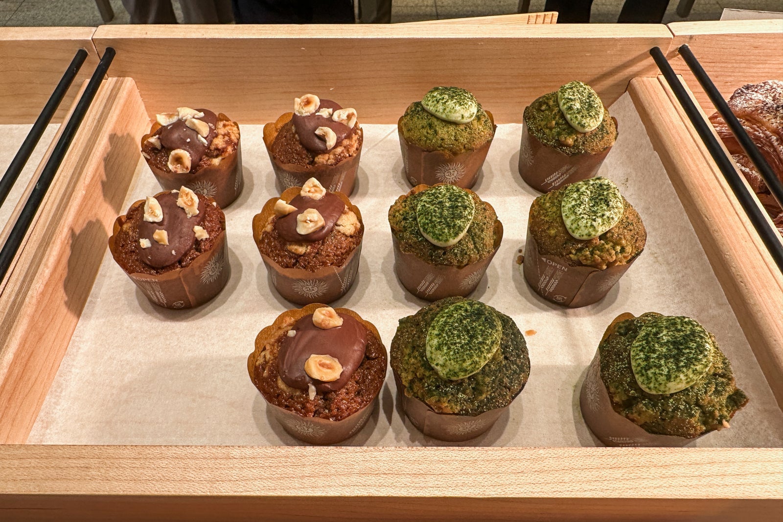 It was the pastry section that really spoke to me, especially the larger-than-life almond croissants and matcha-topped muffins.