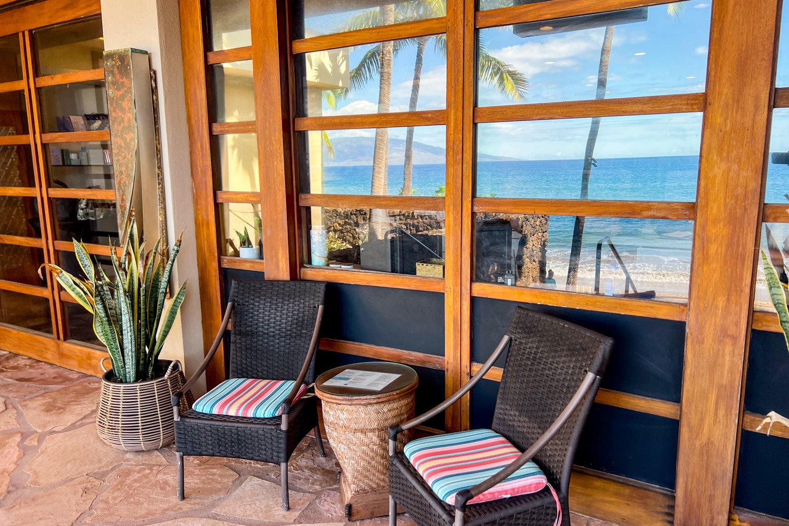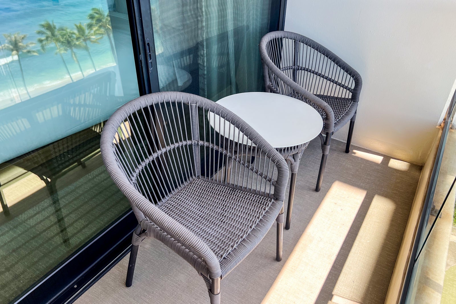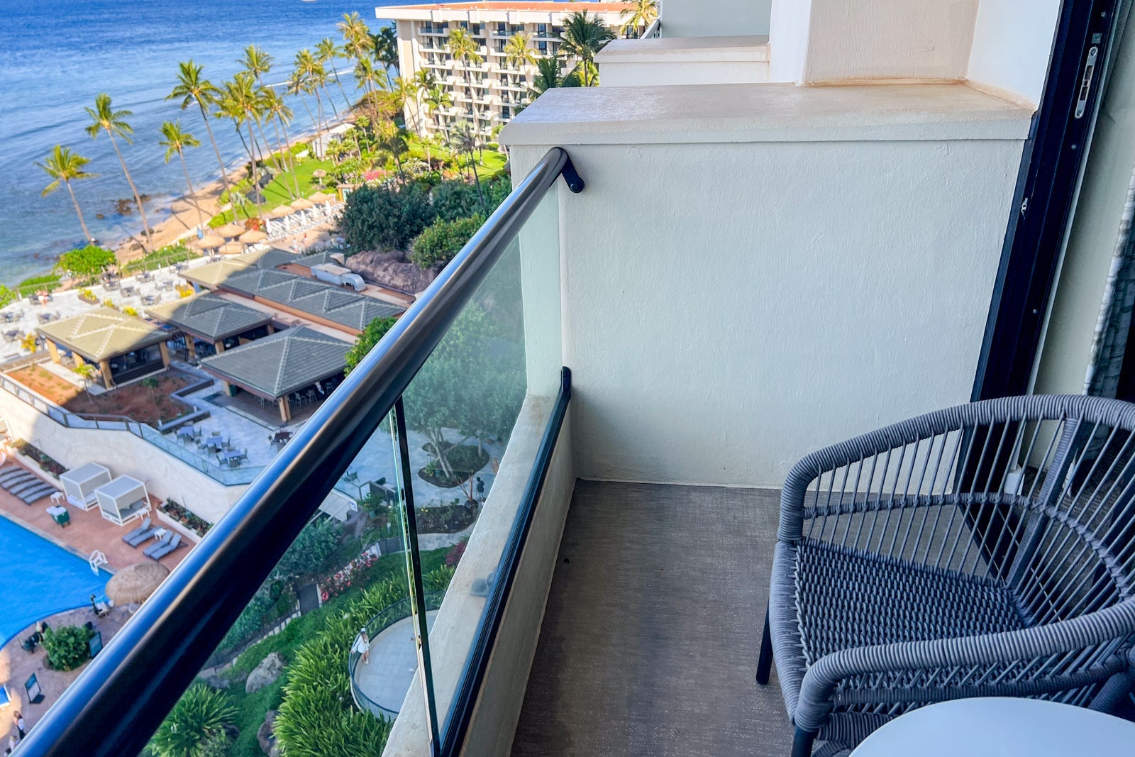 The small lanai had updated furniture, with sweeping views of the resort's pool and the Pacific Ocean.