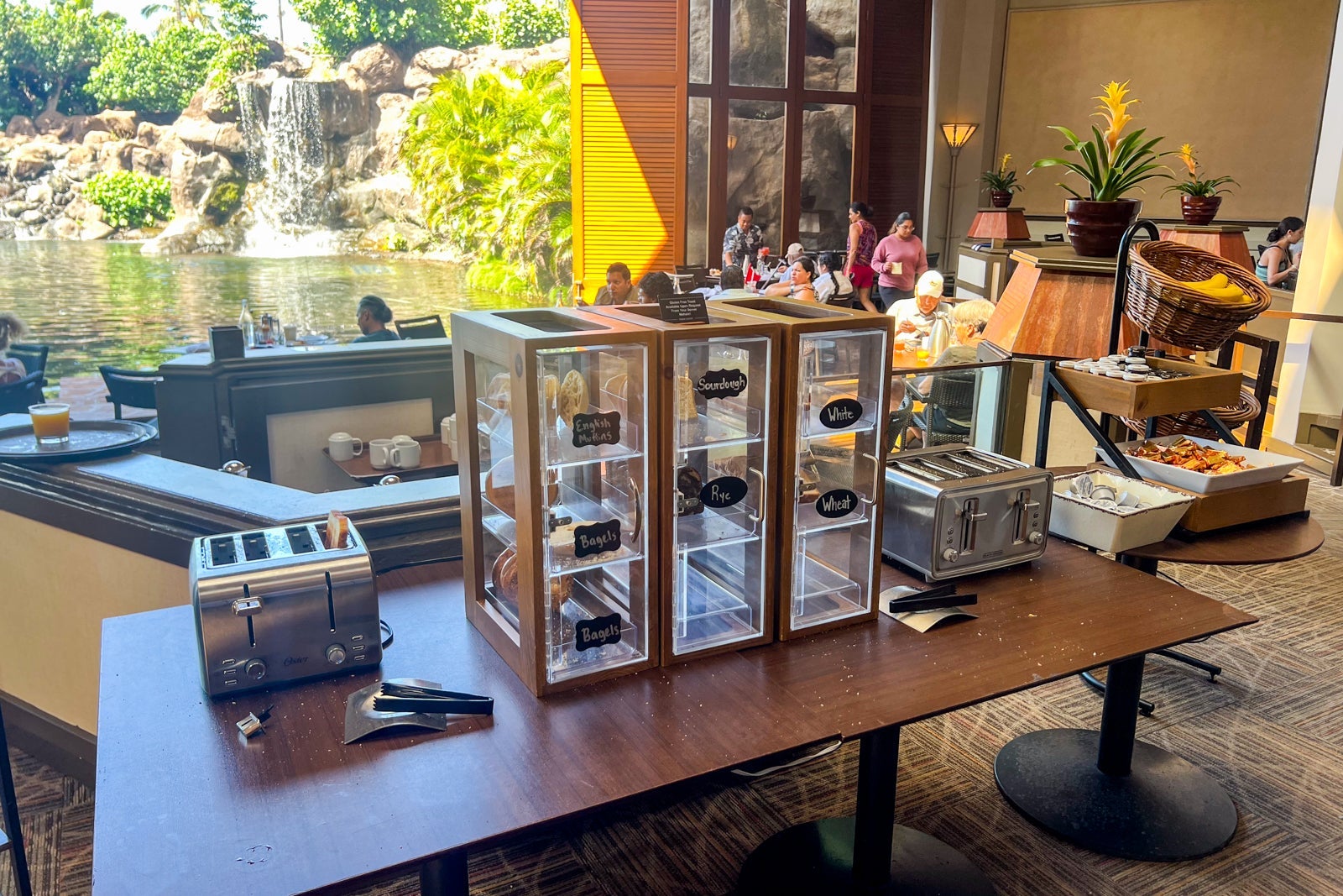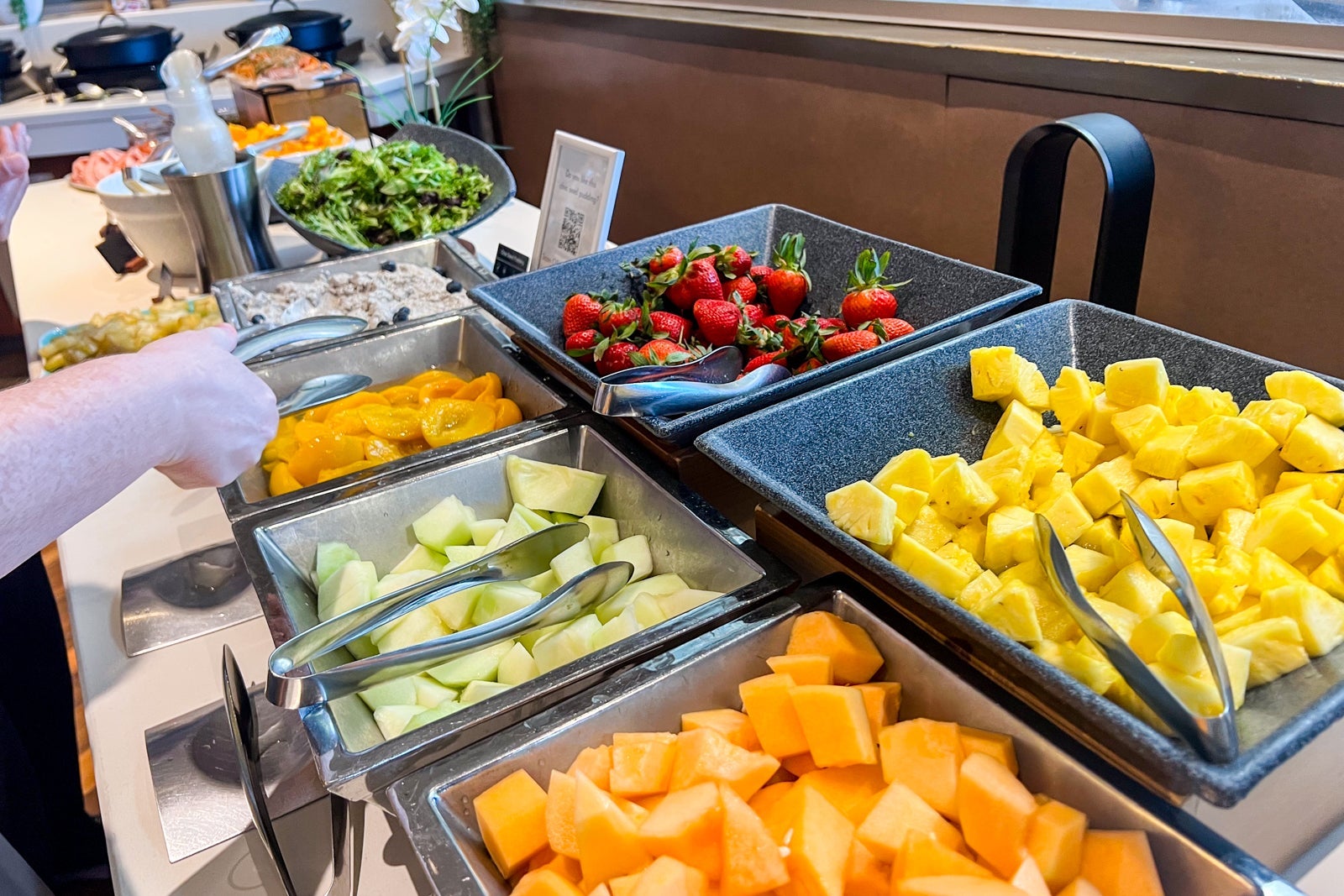 If you are a Globalist or buy up to a club room, you can use the Regency Club, where they serve a full buffet breakfast, light snacks during the day and evening hors d'oeuvres and treats.