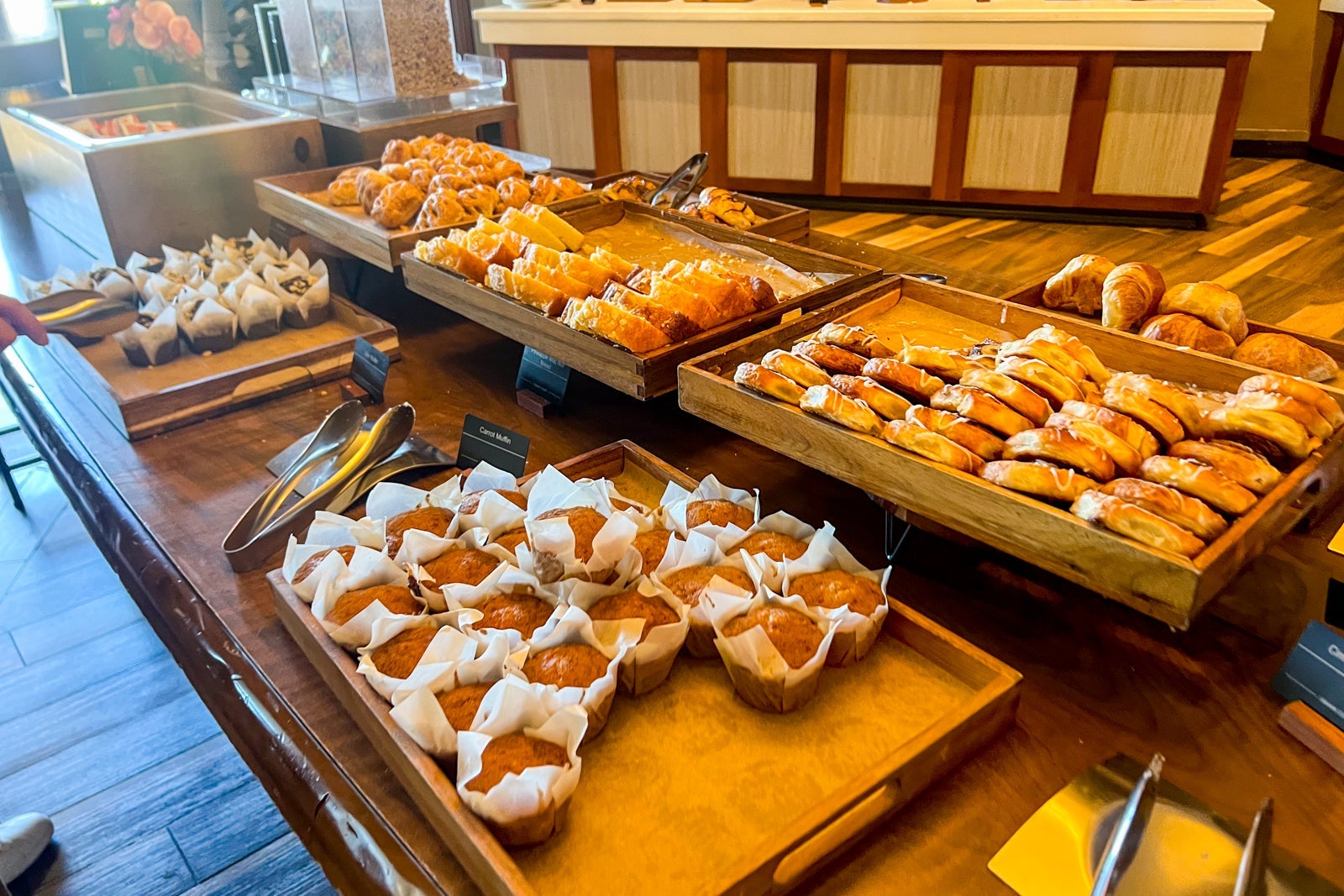 The buffet had a good selection of Asian and American cuisine with pastries, bacon, sausage, eggs, fresh fruit and cereal.
