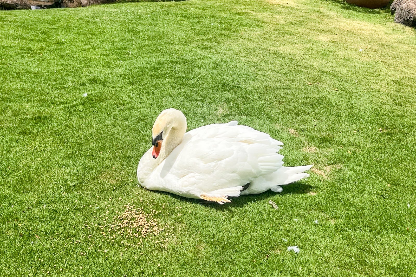 The setting is lovely, with views of one of the resort's ponds and swans and ducks floating by.
