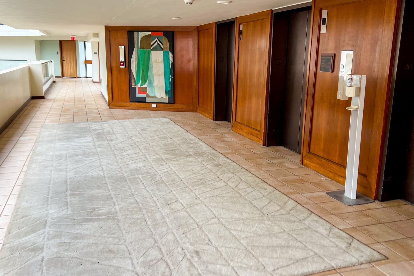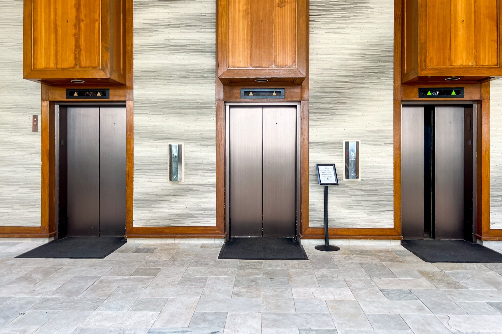 Paths, elevators and doorways are wide, and there is a wheelchair path from the main level down to the pools. Braille signage can be found in the elevators and on each floor.