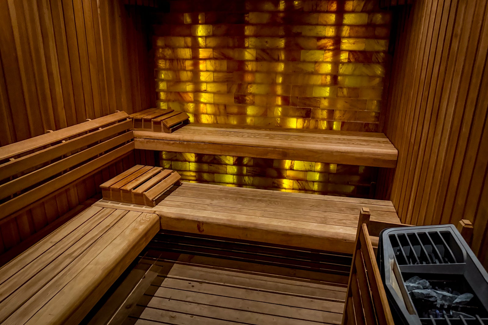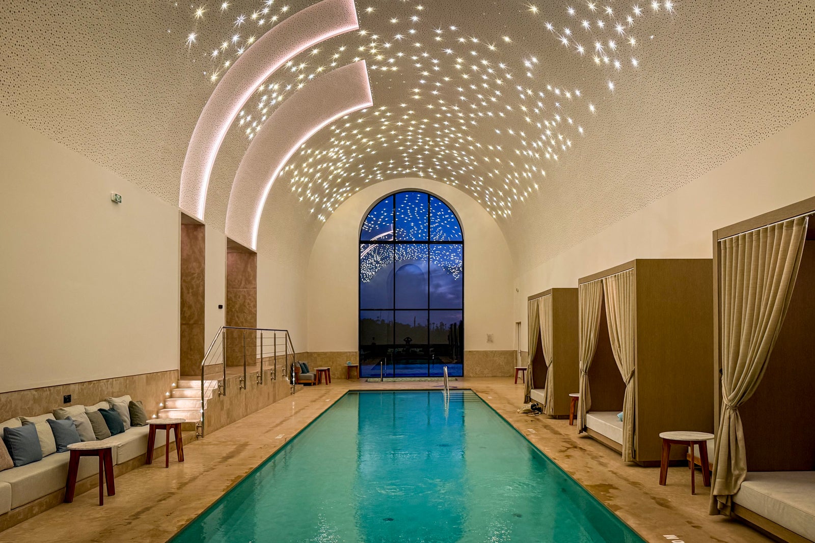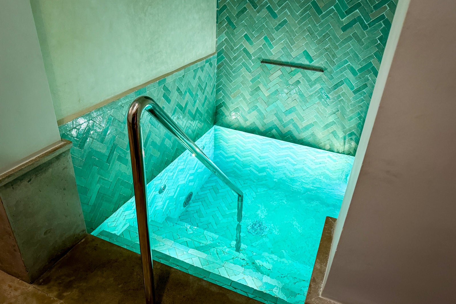 Inside you'll find a wellness lover's dream scenario: a huge heated indoor pool, a hot tub with cabanas, a relaxation room and terrace, a massive gym complex, men's and women's hammam rooms and cold plunge tubs, and a co-ed steam room and sauna.