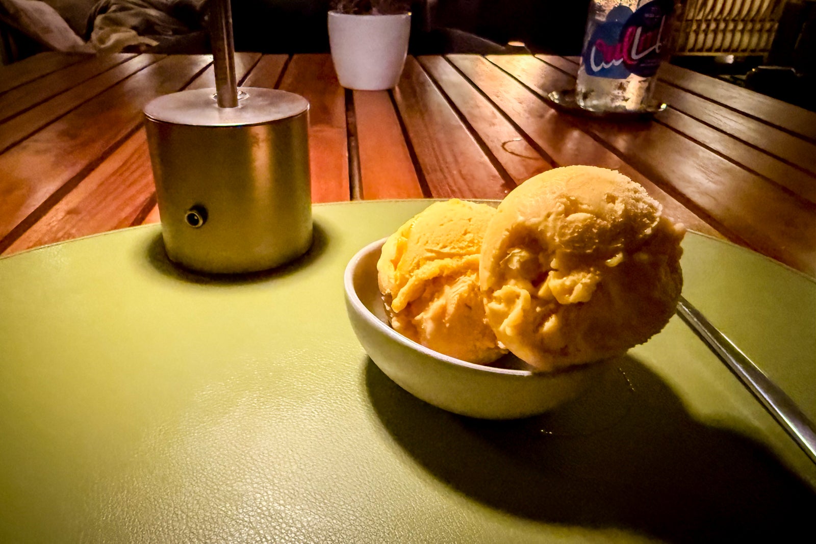 I had a nice dinner on my second night with a well-prepared burger and french fries, topped off with sorbet (totaling $57 after tip). The menu tilts toward comfort food but features culinary influences from both the Mediterranean and Japan (think: seafood with a twist). It's a great place to grab some food and drinks in a more relaxed environment.