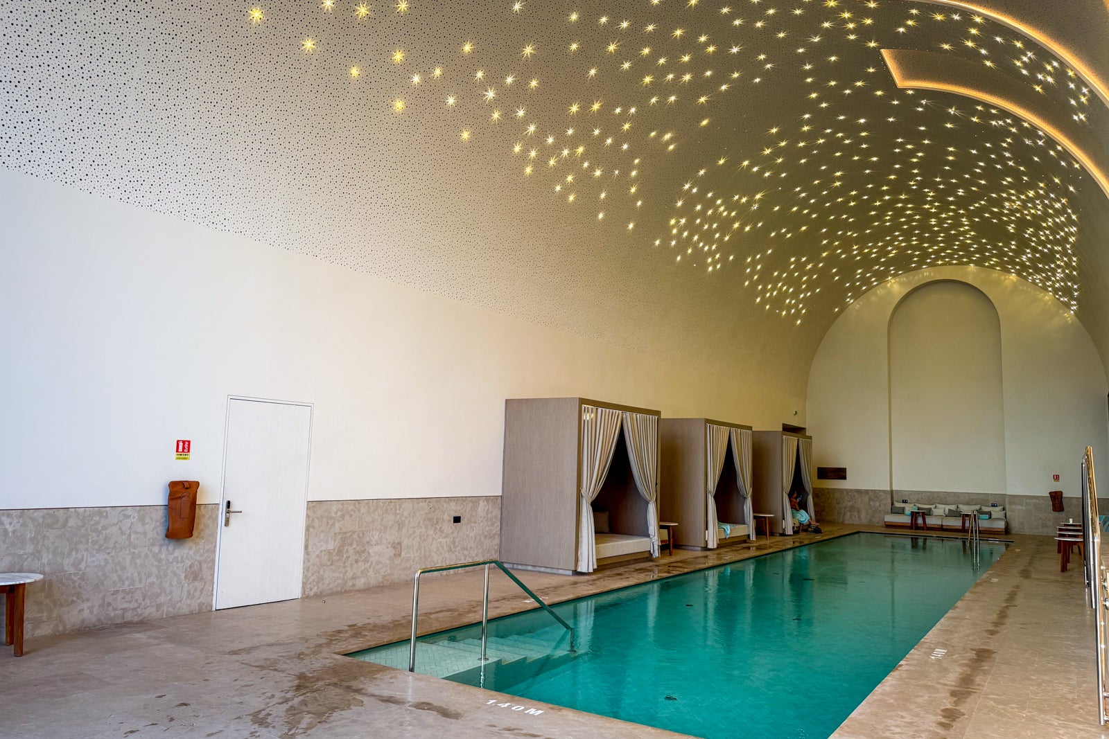 The real star of the show, however, was the indoor swimming pool. The ceiling lit up with stars as dusk fell. Cabanas, free for guest use, lined the pool and hot tub area.