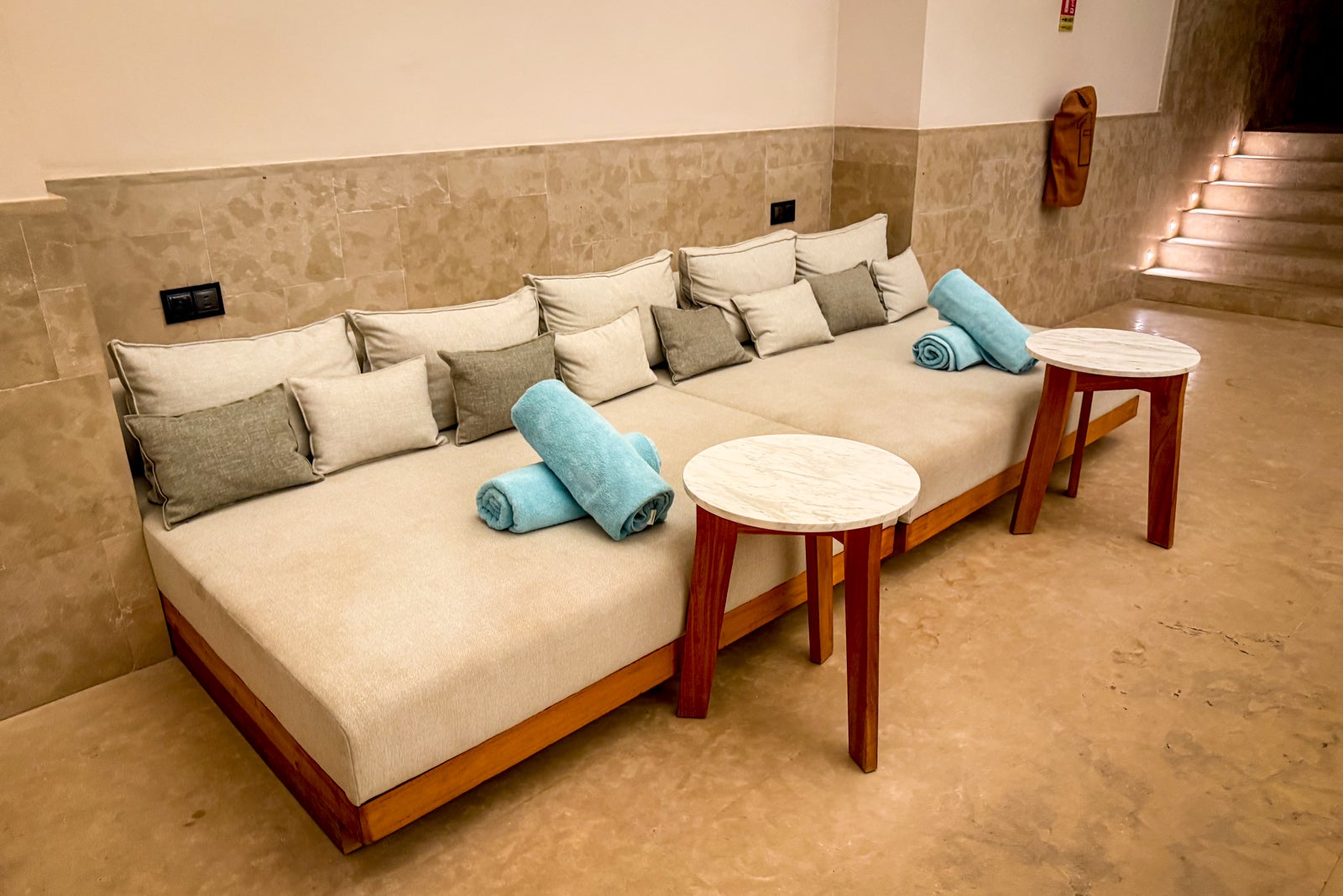 The relaxation rooms in the spa complex are extensive, with multiple areas for unwinding.