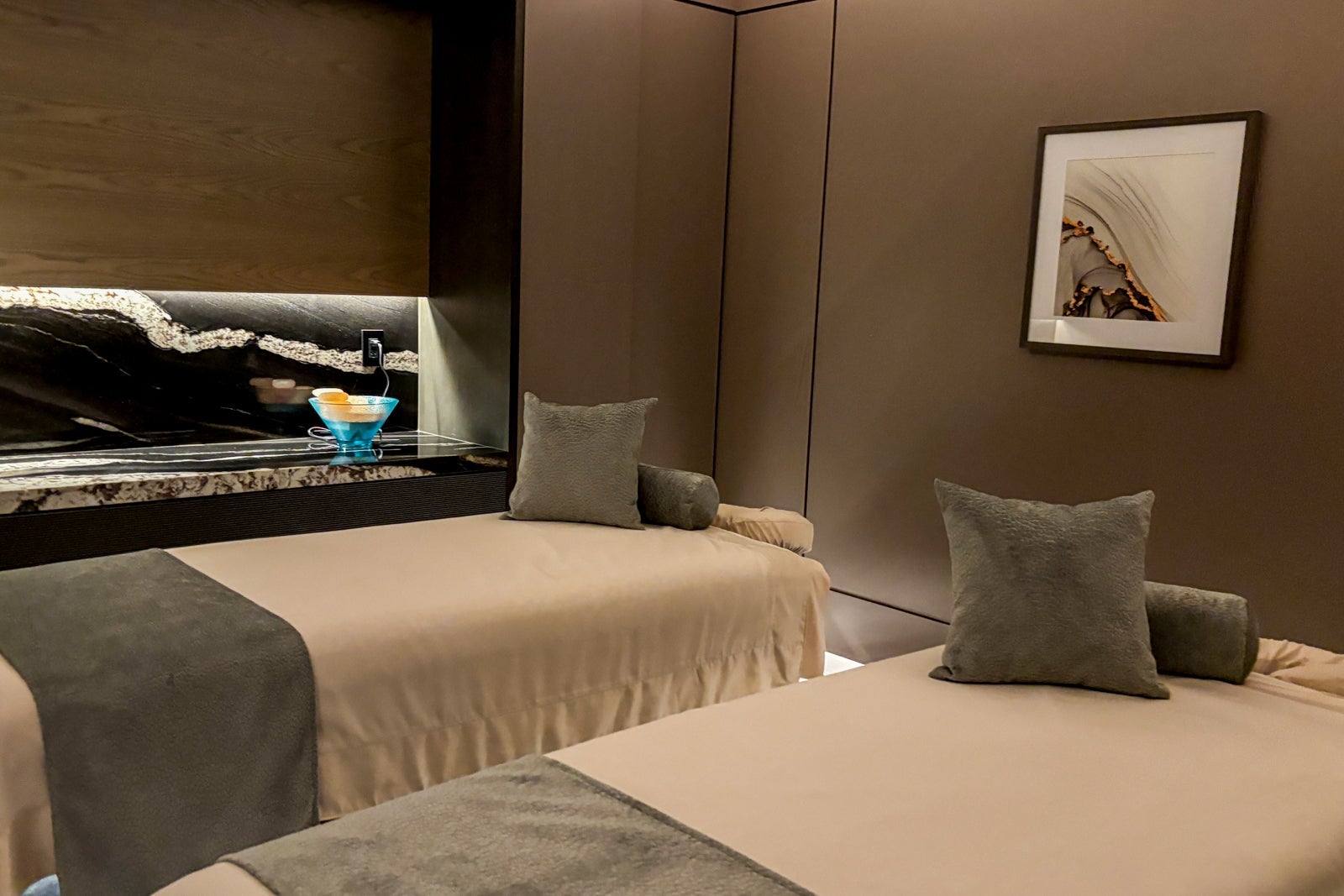 The St. Regis Spa spans an impressive 20,000 square feet, presenting guests with an experience that begins at its unique Celebration Bar. Upon approval, I was welcomed with a complimentary glass of Champagne, setting the tone for what would come.