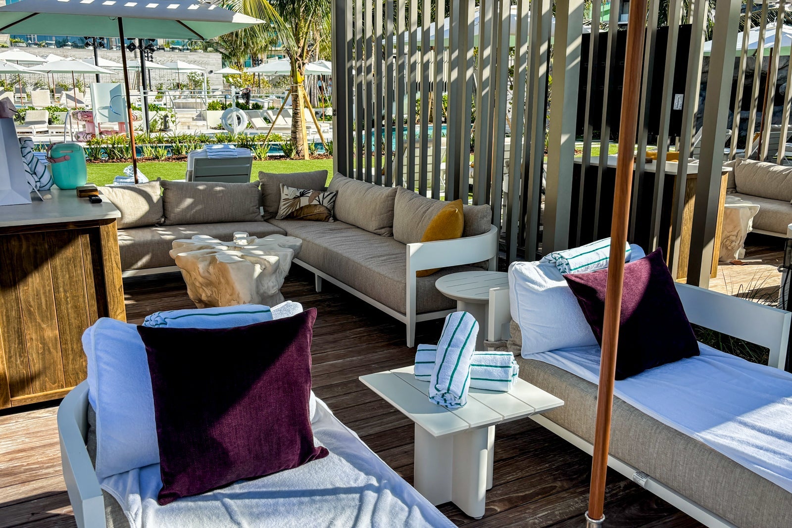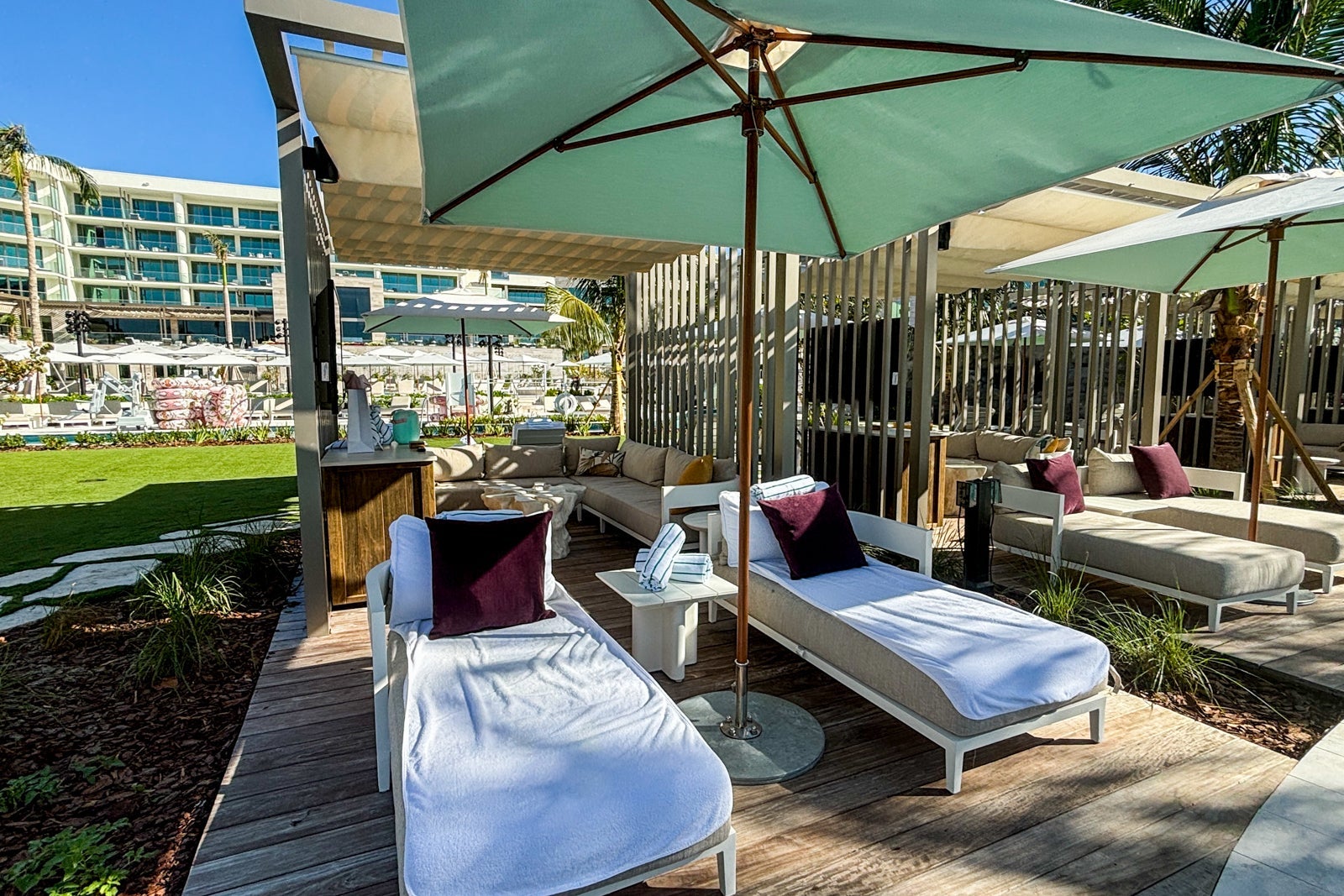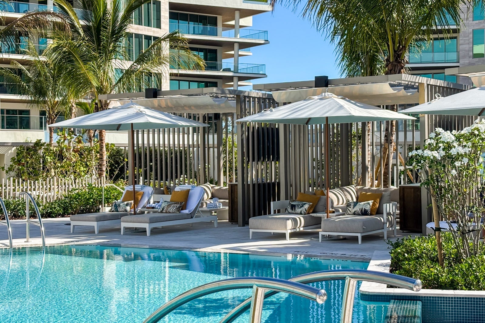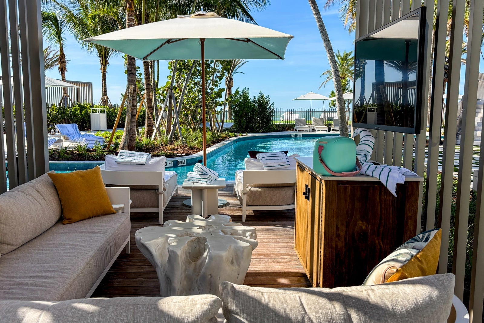 Whether you opt for a lounge chair or rent a private cabana, getting top-notch service is as easy as pushing a button. Each chair has a small St.Regis-branded wood box with two buttons inside, one to call for food and beverage and the other for concierge services.