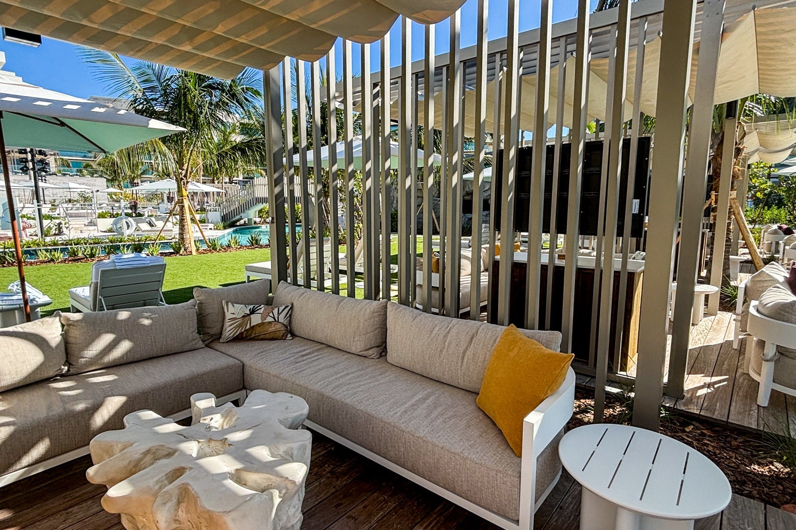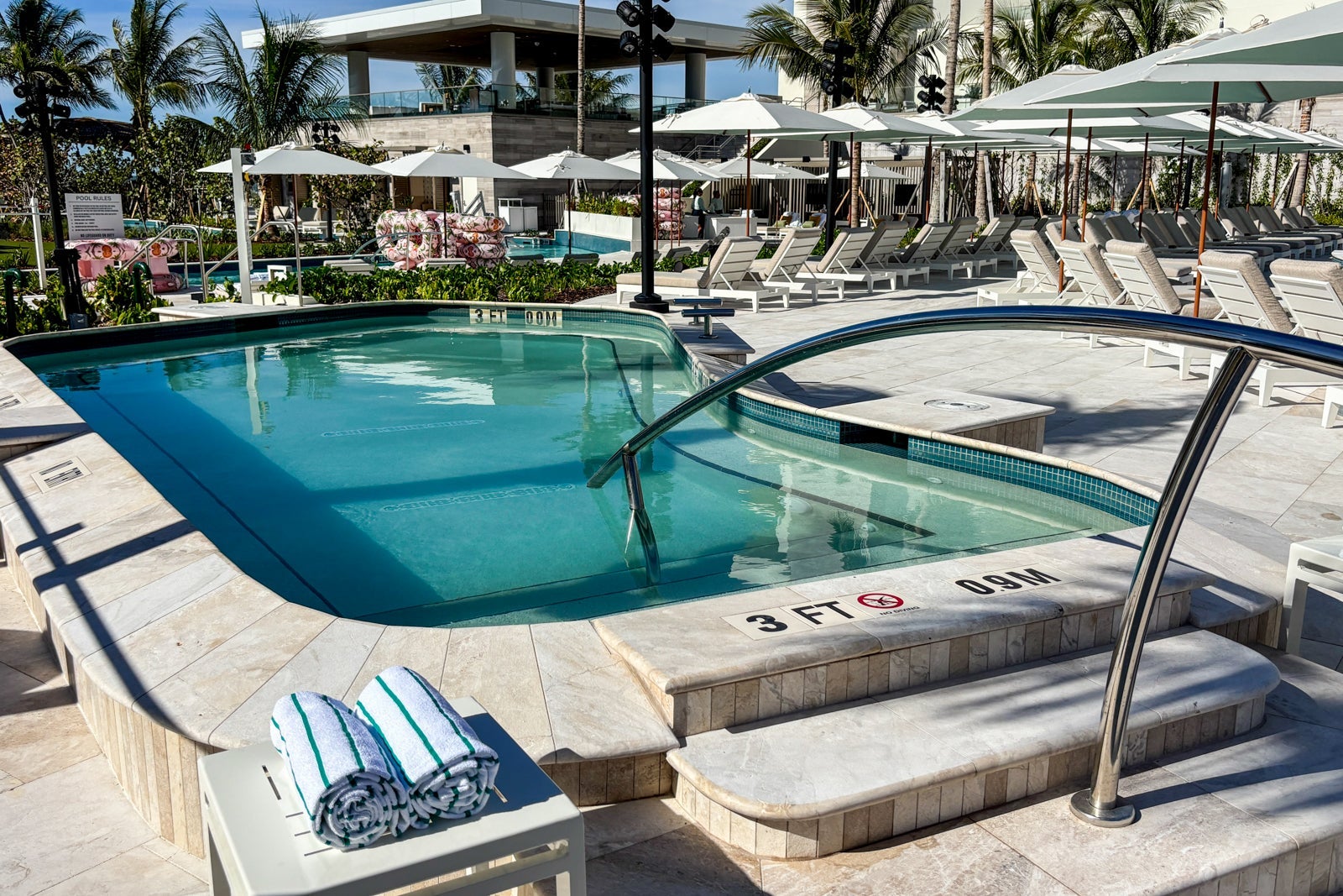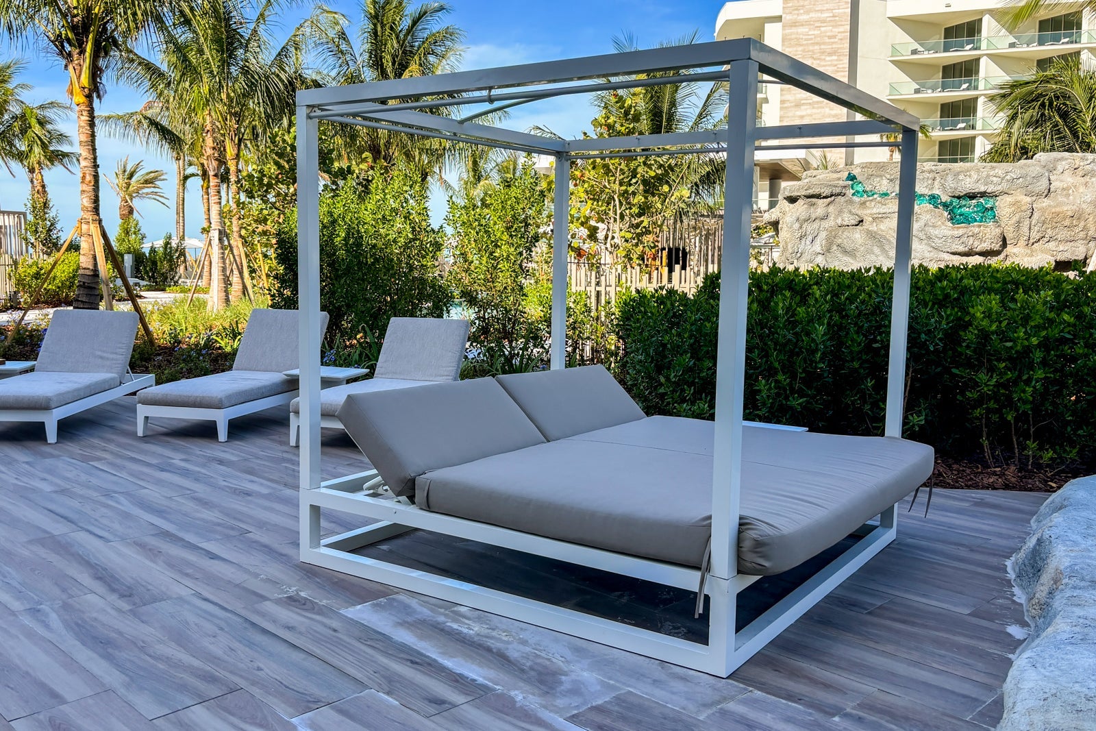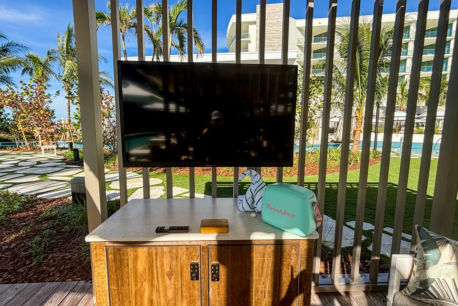 Whether you opt for a lounge chair or rent a private cabana, getting top-notch service is as easy as pushing a button. Each chair has a small St.Regis-branded wood box with two buttons inside, one to call for food and beverage and the other for concierge services.