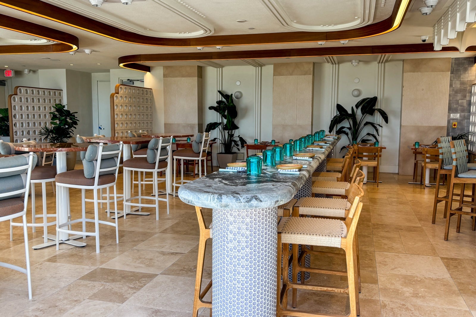 For poolside or in-restaurant dining and tropical cocktails, Aura is the place to be. While we didn't have time for an entire meal here, some of the favorites among staff are the beef barbacoa tacos ($24) and the grouper served with mojito tartar, marinated tomatoes, lettuce, and fennel and apple salad ($26).