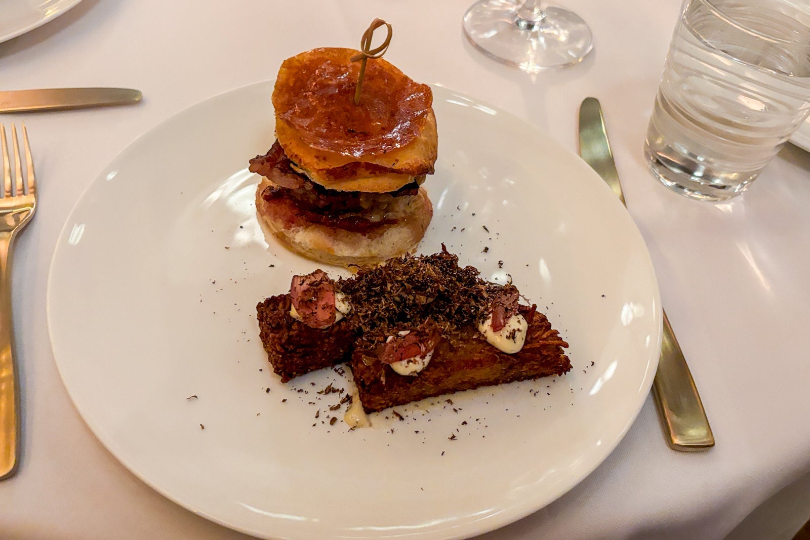 We started with crispy potato pave ($22), which features warm, crispy layers of potato with truffle aioli, pickled pearl onions and fresh truffle. We also had the crispy, fresh CW Caesar ($21) that was easily big enough to split — it can be plated separately to make sharing easier.