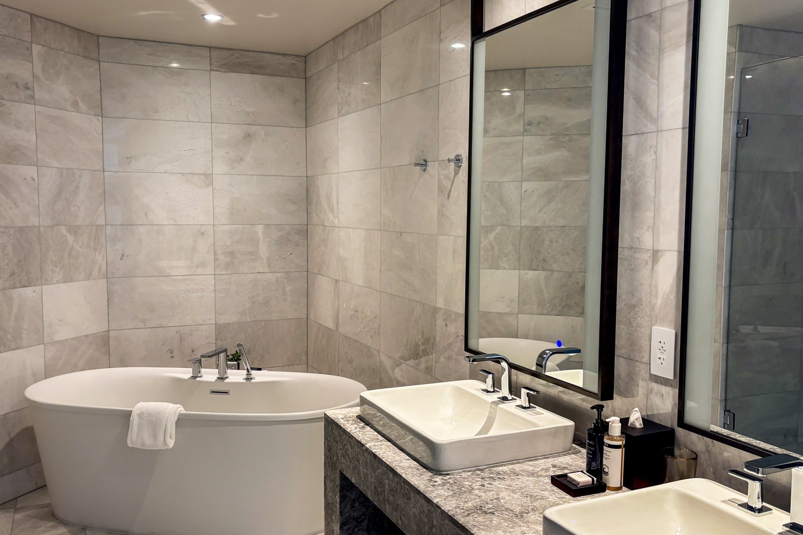 After check-in, I was escorted by our butler, Jennifer, to our suite on the third floor. It was furnished and designed with neutral hues, like grays and creams, as well as organic textures that felt cohesive with the resort's contemporary coastal aesthetic.