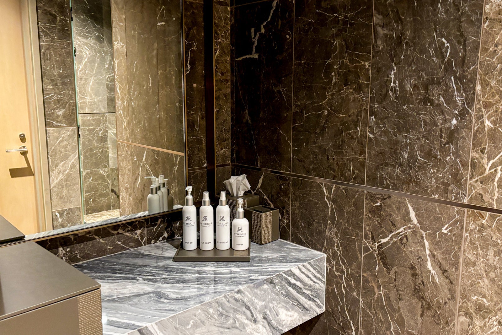 Before entering the bedroom, you walk through the hallway closet, which is stocked with several amenities, including the brand's signature robes and slippers, a safe, an iron and even a specialty laundry bag just for your swimsuit. The staff also noticed my husband and I had glasses, so some St. Regis-branded glasses cleaner was added to one of our closet shelves later that day.