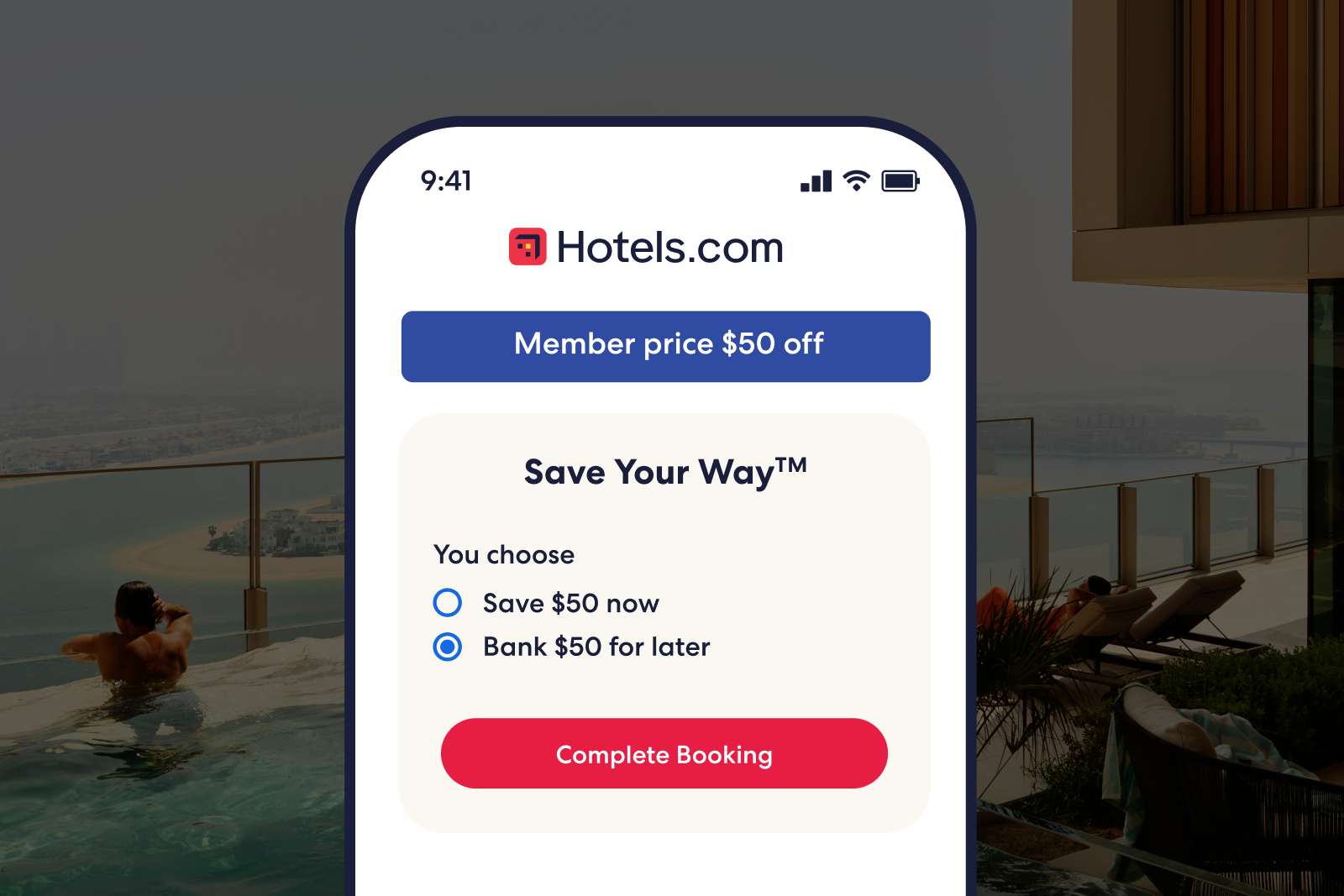 Hotels.com's new Save Your Way feature allows members to decide when and how to use their discounts. It's a creative way for people to take advantage of immediate savings or stash the monetary value of the savings away to use later. Options are always good, and it's nice to have a totally new option at Hotels.com.