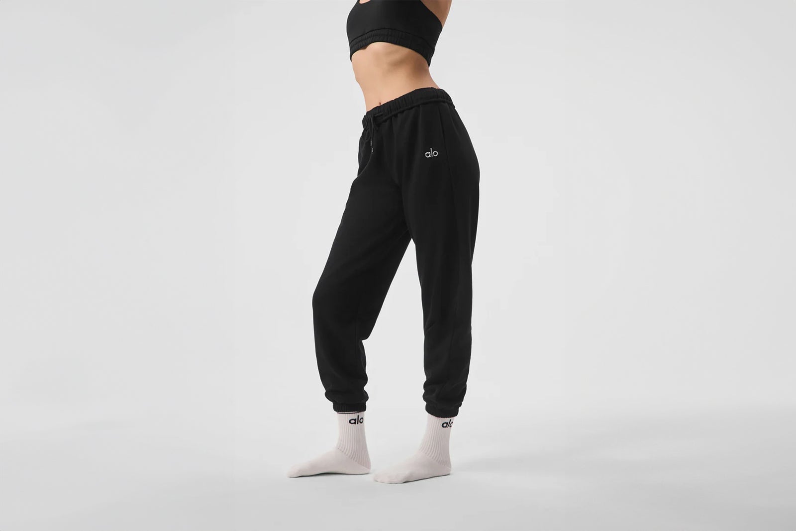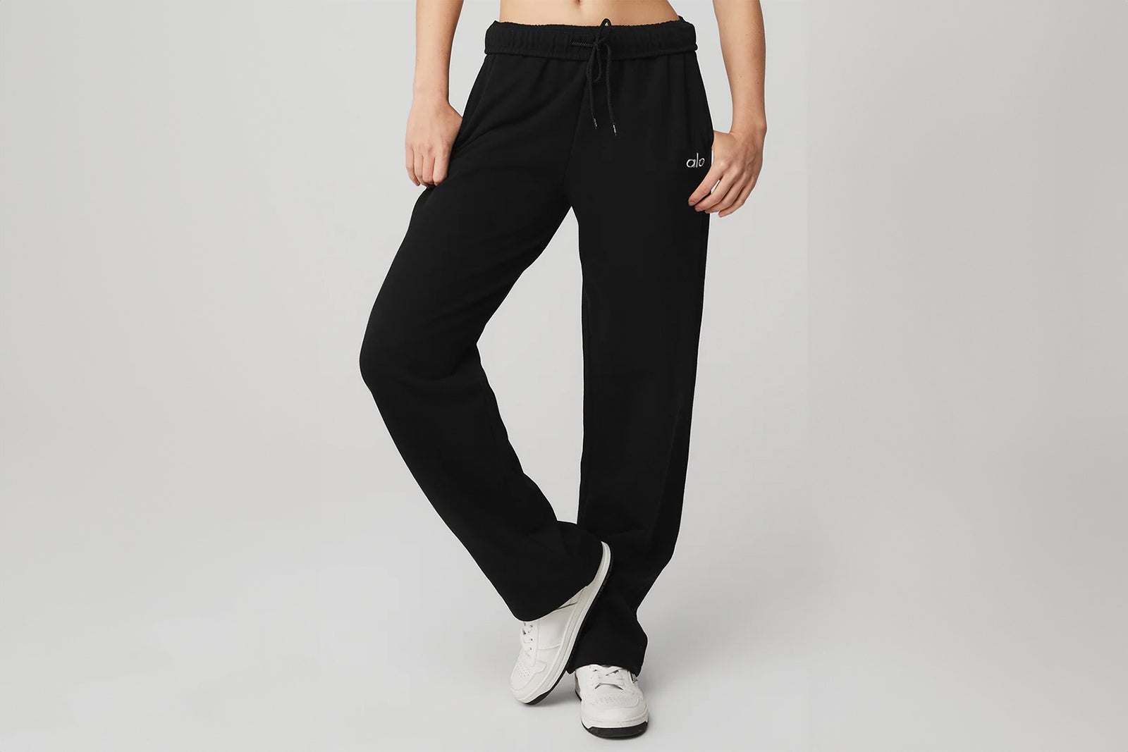 If you prefer more of a classic sweatpants look, these are Alo's most classic sweatpants. They have an elastic waistband and are cuffed at the bottom.