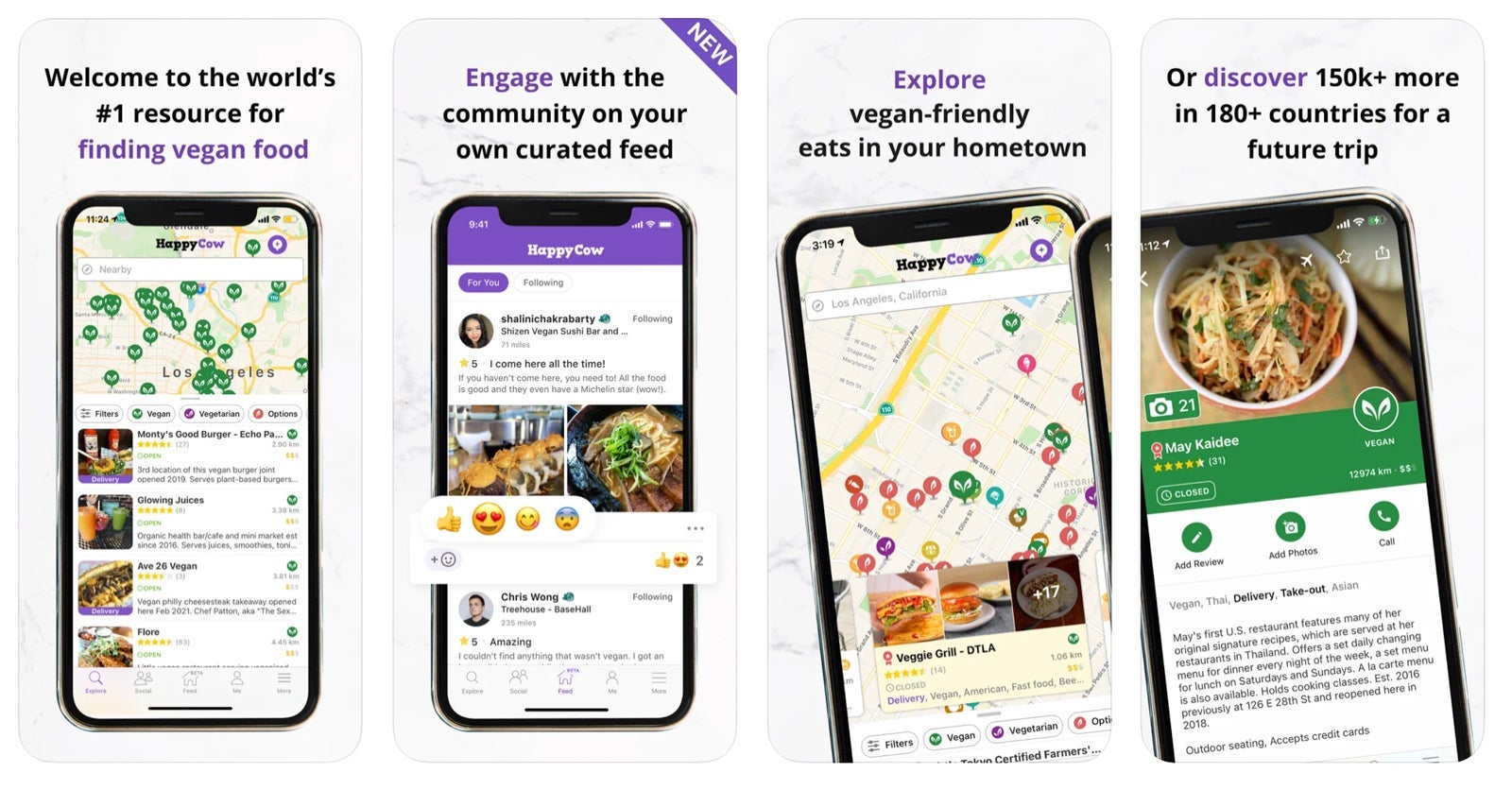 Happy Cow helps vegan and vegetarian eaters locate more than 180,000 restaurants, coffee shops, bakeries, farmers markets and grocery stores in over 180 countries around the world. The app allows you to filter by not only vegan and vegetarian but also gluten-free and cuisine types. You can also read reviews and get recipes on the app as well.