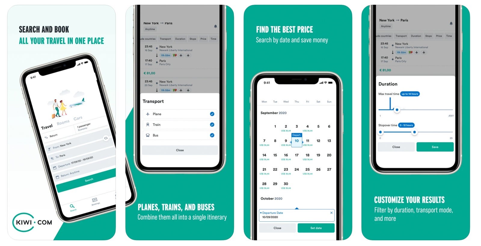 Kiwi is used mainly to book flights, but it also helps you book hotels (using its partnership with Booking.com) and car rentals (using its partnership with RentalCars.com).