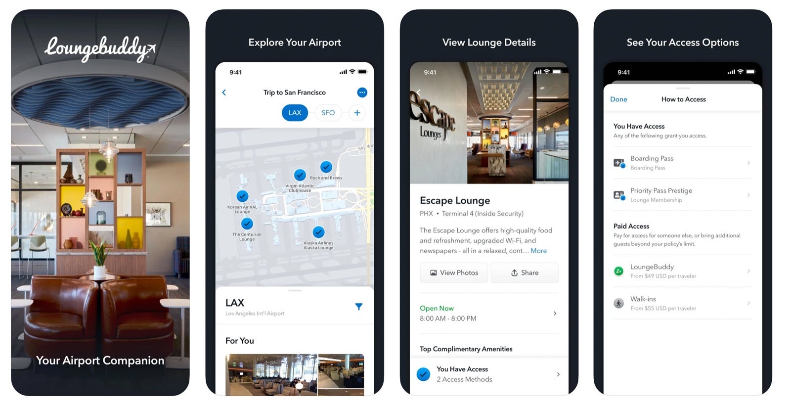 LoungeBuddy offers access to premium airport lounges around the world, regardless of the airline or class you're flying. When you create a trip in the app and type in the credit cards you currently hold, it will tell you which lounges you have access to based on the airports you'll be transiting through and how to purchase access if you don't already have it.