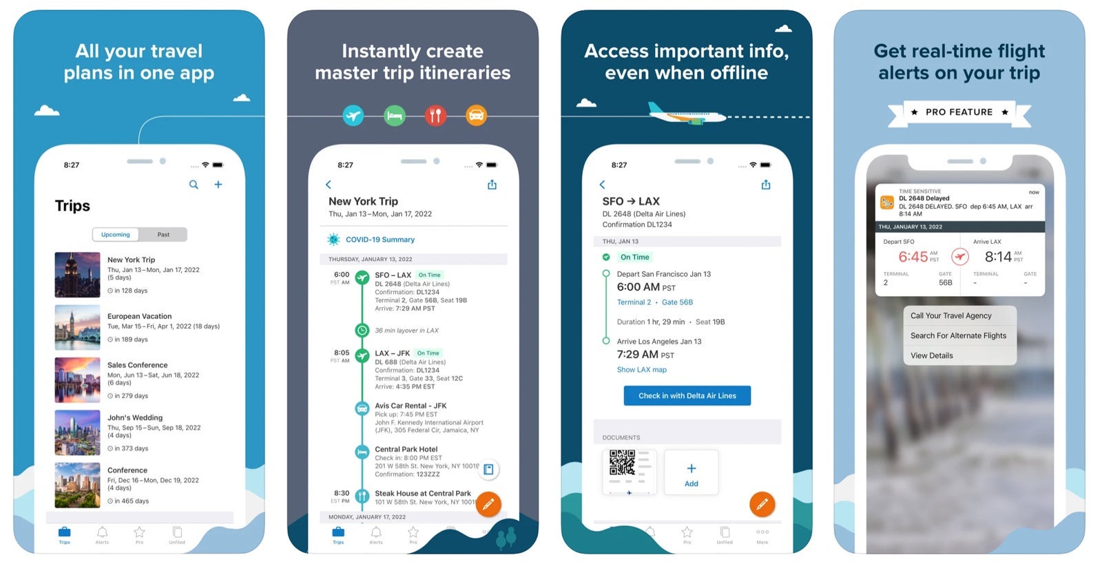 TripIt also makes it simple to share your trip plans with whoever picks you up from the airport or train station or anyone else who may need to coordinate with you. TripIt Pro subscriptions cost $49 per year and include extras like real-time flight alerts, security wait times, baggage claim information and updates on your loyalty reward programs.