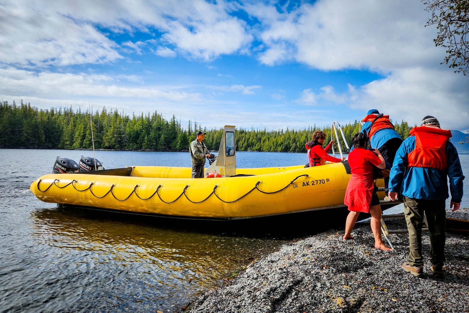 This is where I donned my bright red spacesuit for the adults-only Northern Great Bear Rainforest by Zodiac excursion ($230 per person), in which we toured the rainforest's meandering coastline by motorized raft. We didn't spot any spirit bears, but we did see several bald eagles resting regally in the treetops, as well as harbor porpoises and sea lions bobbing through the water.