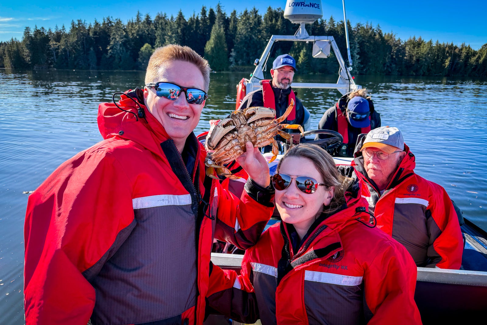Where I come from, puddles are a rare sight — so it was fascinating to see just how much water is woven into the fabric of daily life here. We cruised past the Port of Prince Rupert, Canada's third-busiest seaport, and Prince Rupert Airport (YPR), where a once-daily flight to Vancouver, British Columbia, connects residents to the outside world. We saw from afar the village of Metlakatla and learned how Indigenous communities there have been living off the land (and sea) since the mid-1800s. We even got to meet Dungeness and red rock crabs that our tour guides caught in underwater traps, destined for the dinner table.